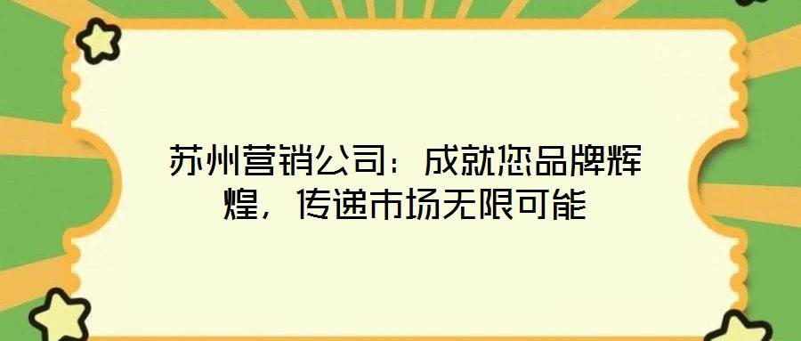 苏州营销公司以专业为基石,以创新为动力,以品牌为灵魂,以市场为战场,全方位助力客户实现从品牌建设到市场突围的跨越。选择苏州营销公司,不仅是选择一个服务商,更是选择一个与品牌共同成长的战略伙伴——在这里,每一个品牌都能绽放独特光芒,每一个市场机遇都能被无限放大。